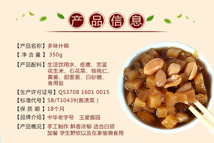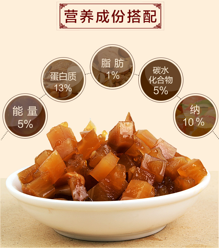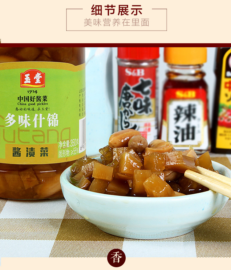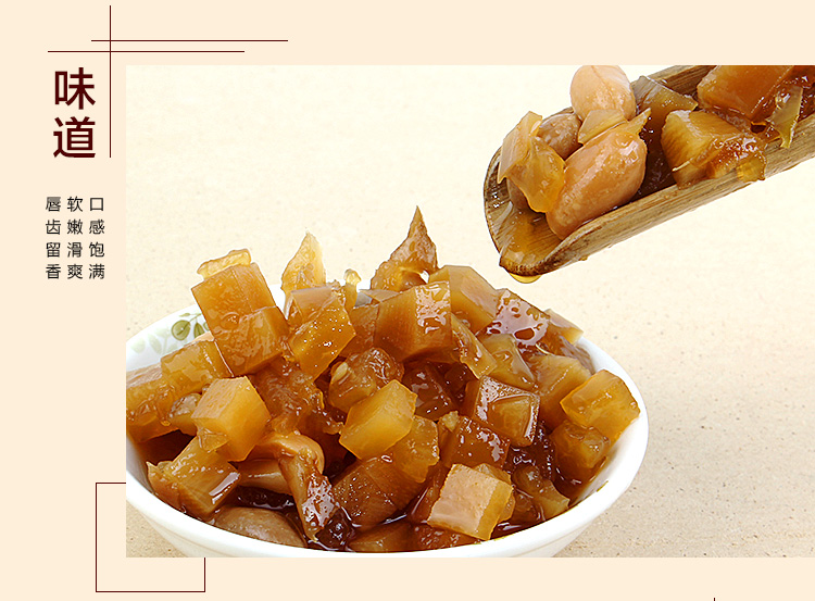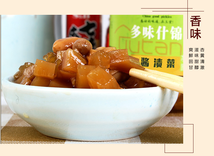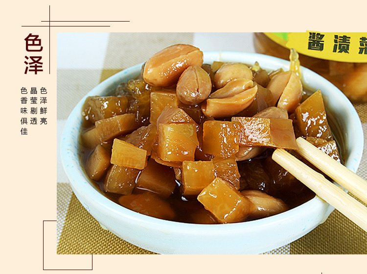 酱香浓郁、色泽鲜艳,甜而不腻,咸而不浊,脆而适口,色、香、味、型俱佳,南北风味兼而有之。