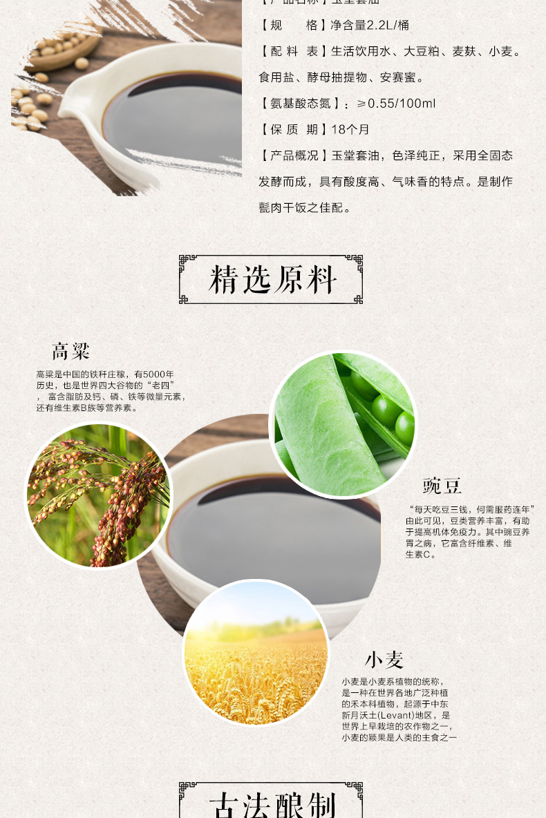 采用先进发酵工艺,具有炒菜不粘锅的特性,不管烹煮炸炒,早放晚放,都不粘锅,且营养丰富,更易吸收,有烧肉颜色好,炒菜味道鲜的特色,特别适合家庭和餐饮使用。