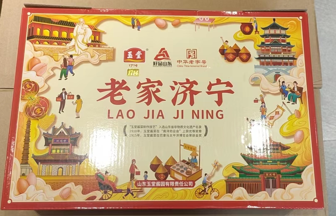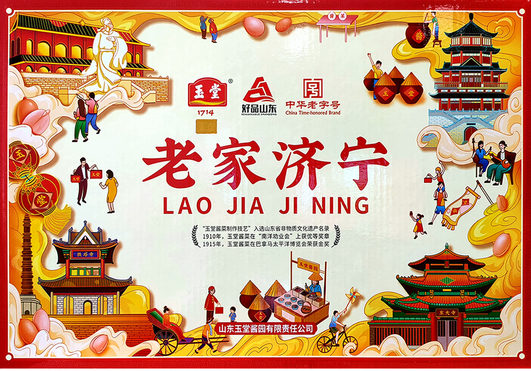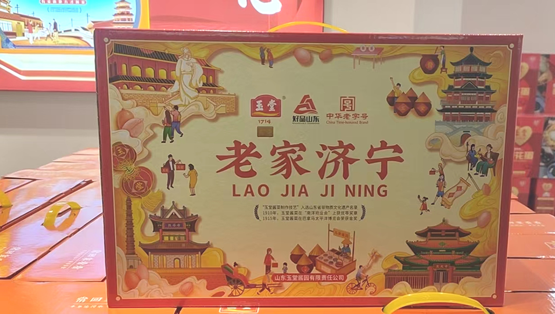 老家济宁——地方名吃 玉堂酱菜:咸甜适度,酱香浓郁,脂香扑鼻,口感脆爽。 公司名称: 山东玉堂酱园有限责任公司 公司地址: 济宁市任城区济邹路1号 服务热线: 400-6900-008 举报方式:电话 0537-2337719、举报邮箱416904816@qq.com 邮箱: 416904816@qq.com 网址: www.yutang.com.cn