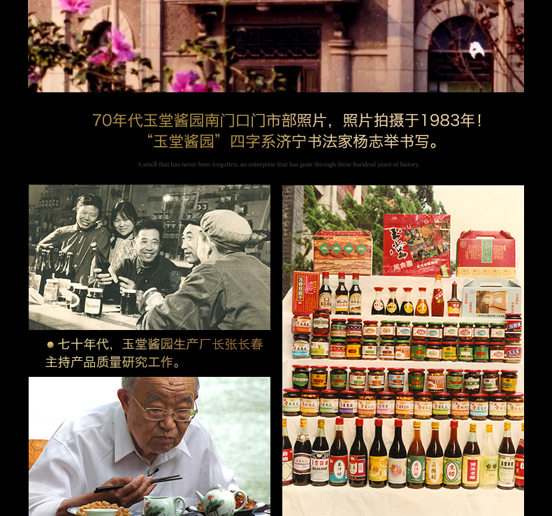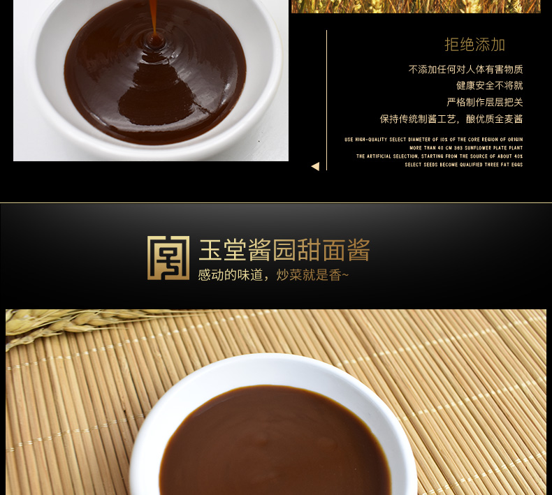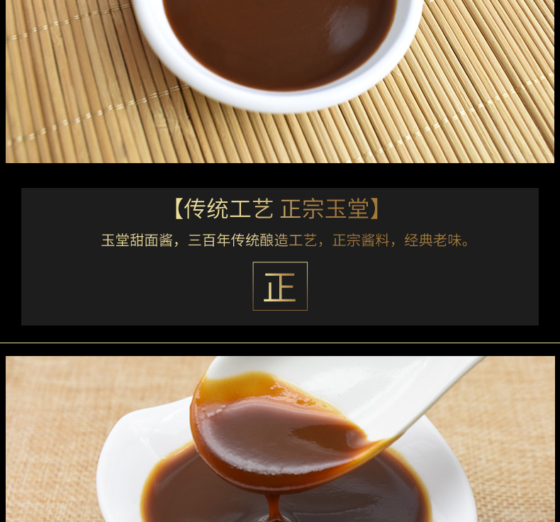 产品特色 采用先进发酵工艺,具有炒菜不粘锅的特性,不管烹煮炸炒,早放晚放,都不粘锅,且营养丰富,更易吸收,有烧肉颜色好,炒菜味道鲜的特色,特别适合家庭和餐饮使用。 公司名称: 山东玉堂酱园有限责任公司 公司地址: 济宁市任城区济邹路1号 服务热线: 400-6900-008 QQ: 416904816 邮箱: yutang300@126.com 网址: www.yutang.com.cn