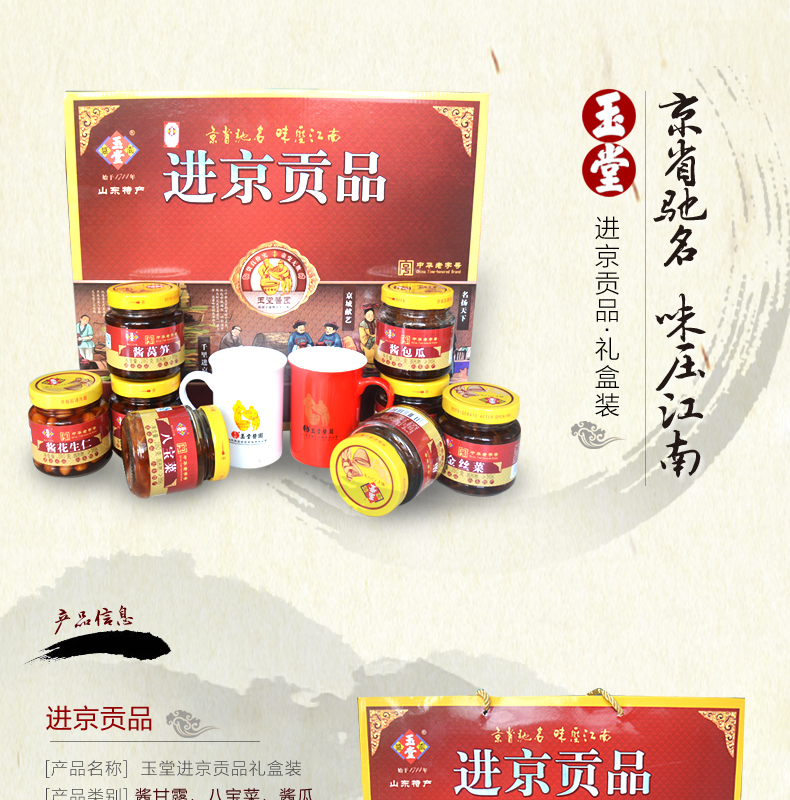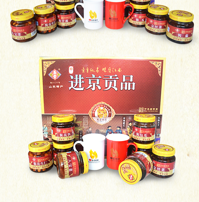 山东特产,京省驰名,古方酿造,货真价实。光着鲜艳,甜而不腻,咸而不浊,脆而适口,南北风味兼而有之。