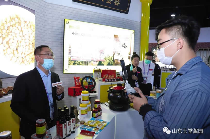 2020年11月5日--10日,第三届中国国际进口博览会正在上海国家展览中心盛大举行,玉堂酱园在上海进博会山东老字号非遗精品区参展。