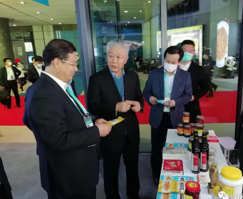 11月5日,第三届中国国际进口博览会开展,山东省济宁市委副书记、市长林红玉等领导来到玉堂酱园展位调研指导。