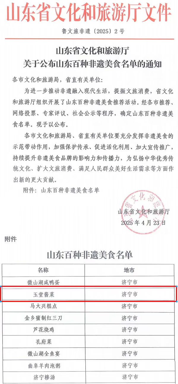 近日,山东百种非遗美食名单新鲜出炉,济宁市的玉堂酱菜、孔府菜、济宁糁汤等9个非遗美食项目入选。